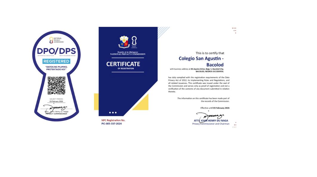 Colegio San Agustin – Bacolod (CSA-B) respects your right to privacy in accordance with the provisions of Data Privacy Act of 2012 (Republic Act No. 10173) and its Implementing Rules and Regulations (IRR).